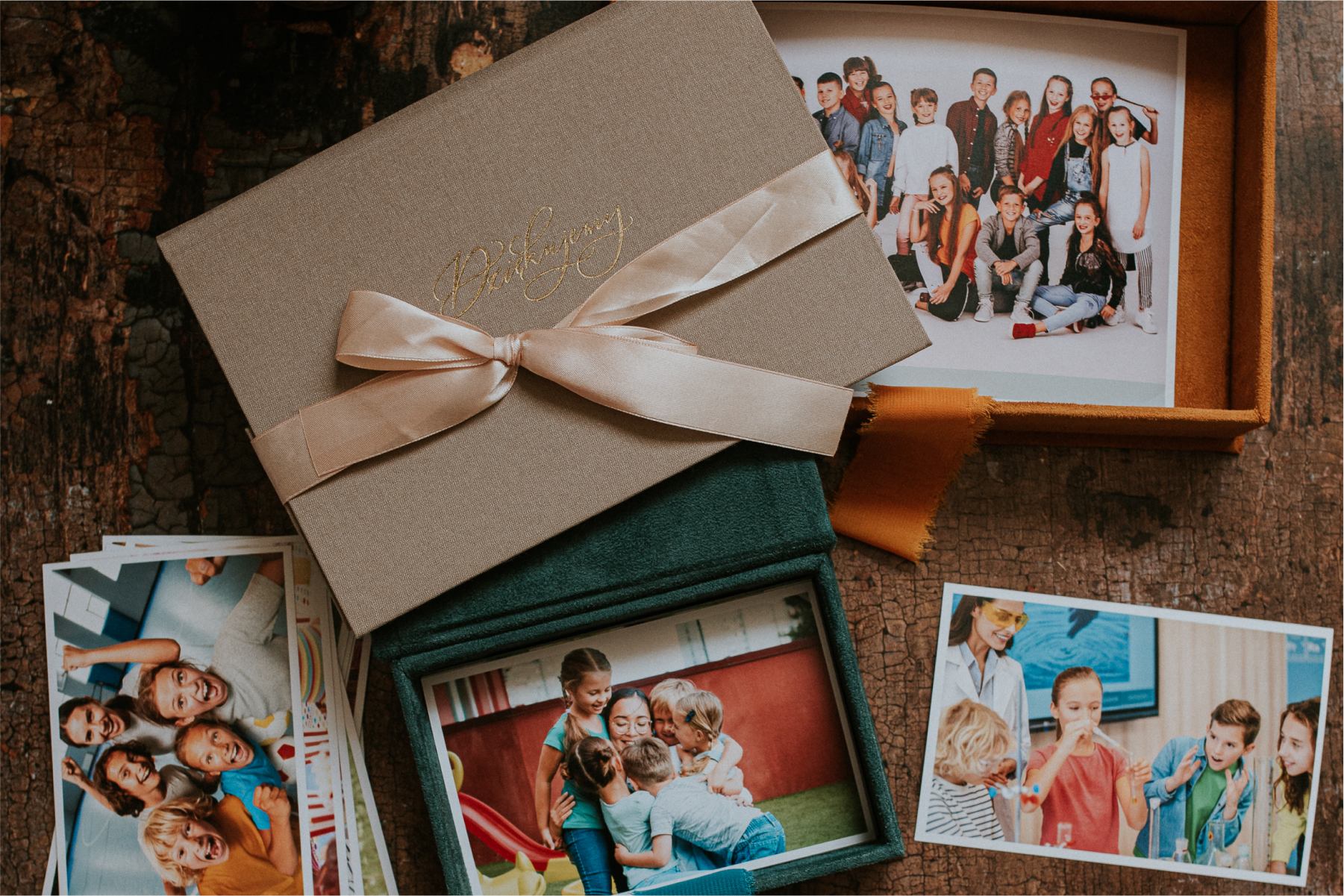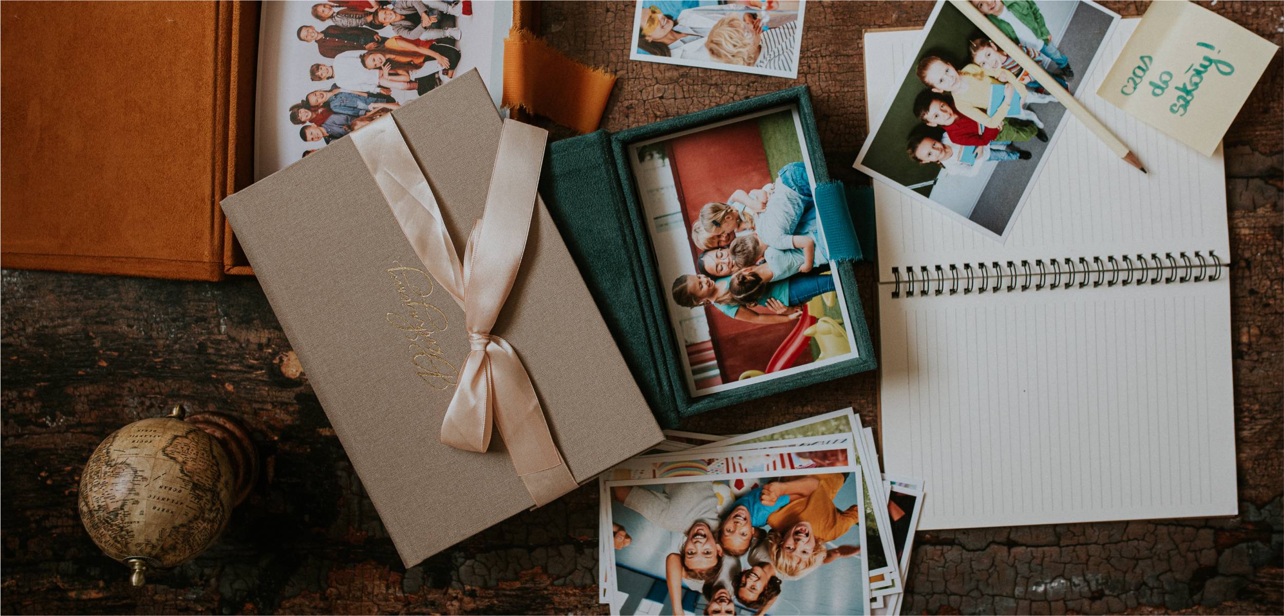 Starannie zapakowane w ekologiczne pudełka z naturalnym wypełnieniem. W środku odbitki, mini-albumy i drobiazgi, które wywołują uśmiech u dziadków i rodziny.